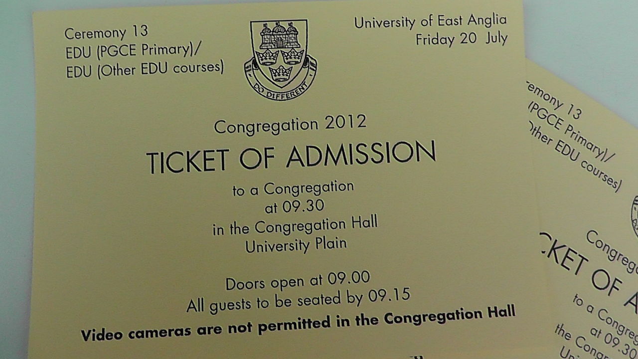大学に朝、7時半に着き、ガウンを受け取り、式場への入場券(学生分+招待客分)とその後のパーティーの券を受け取りました。