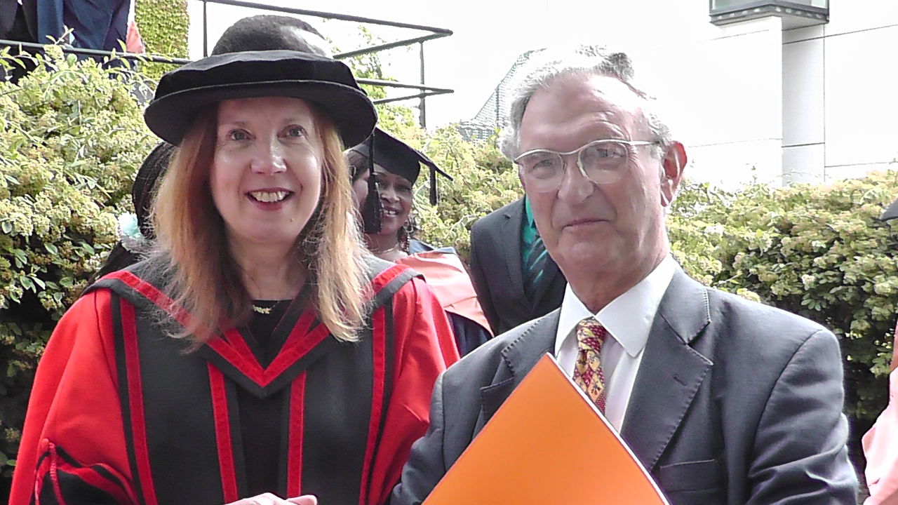 ブライアンとジュディ。ジュディはリバプール大学のガウンを着ています。